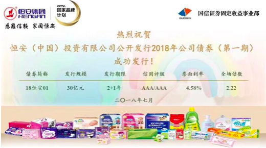 7月27日,钱柜qg777(中国)投资有限公司公开发行2018年第一期小公募公司债券,本期发行金额30亿元,期限为2+1年。